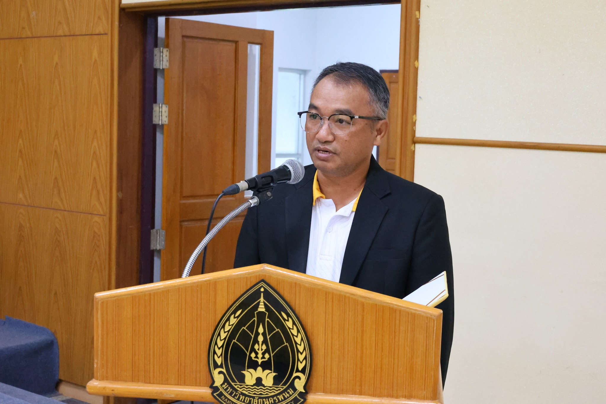 วันที่ 19 มีนาคม 2569 เวลา 09.00 น. ศาสตราจารย์เกียรติคุณ ดร.ธวัชชัย ศุภดิษฐ์ อธิการบดีมหาวิทยาลัยนครพนม เป็นประธานกล่าวเปิดโครงการจัดทำระบบและข้อสอบสมรรถนะภาษาอังกฤษ (English Competency) สำหรับนักศึกษาระดับอาชีวศึกษา โดยมี นายสุมิตรชัย กันหาคุณ ผู้ช่วยอธิการบดีฝ่ายอาชีวศึกษา กล่าวรายงานวัตถุประสงค์ฯ พร้อมด้วยคณบดี รองคณบดี/ผู้อำนวยการ และอาจารย์ประจำหลักสูตรภาษาอังกฤษจากคณะและวิทยาลัยในสังกัดมหาวิทยาลัยนครพนม เข้าร่วมโครงการ ณ ห้องพนมนาคา ชั้น 5 อาคารสำนักงานอธิการบดี 1 มหาวิทยาลัยนครพนม เขตพื้นที่ศรีโคตรบูรณ์ โดยจัดขึ้นระหว่างวันที่ 19 – 20 มีนาคม 2569